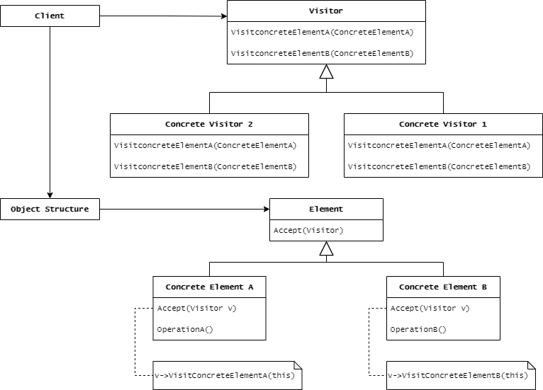 std::cout << "Visit ConcreteElementA" << std::endl;