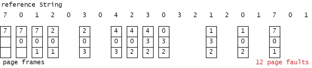 위 Reference String은 프로세스가 1번->2번->4번->6번->1번->3번 페이지가 필요했다는 뜻이다.