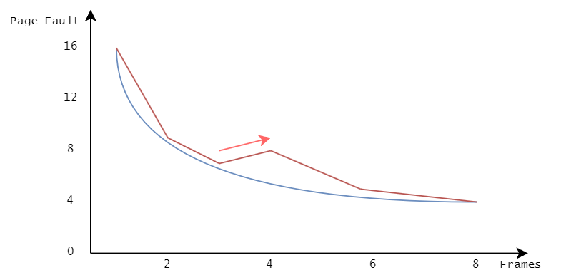 보통 Frame이 많아질수록 Page Fault가 줄어든다.