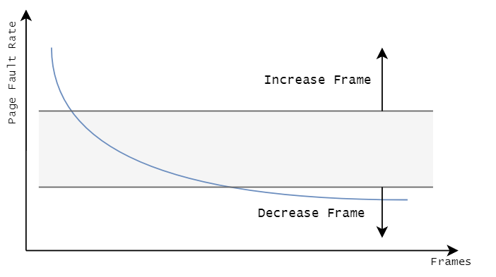 Page Fault가 너무 적으면 Frame이 과하게 할당된 것이므로 Frame을 줄인다.
