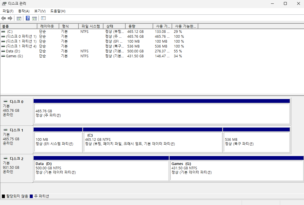 디스크는 1개 이상의 파티션으로 구성되어 있다.