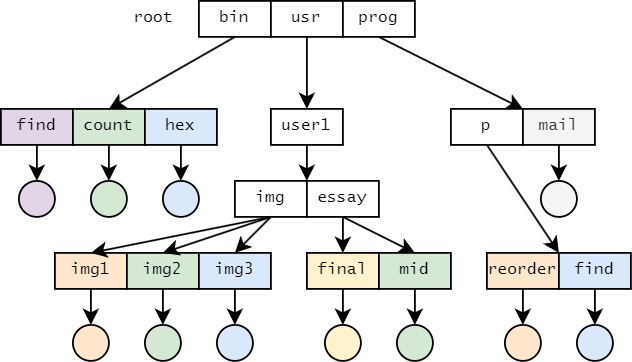 이걸 사용해 다양한 방식으로 전체 디렉터리와 파일 구조를 구현한다.