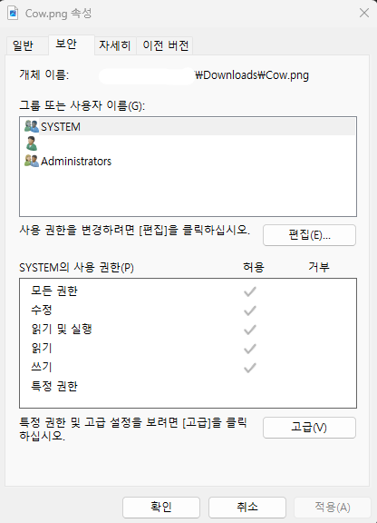Windows에서 파일 속성에 들어가면 접근 권한을 설정할 수 있는 탭을 볼 수 있다.