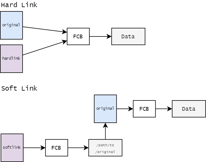 - Hard Link : 한 파일을 참조하는 디렉터리의 개수를 기록해 두고, Count가 0일 때만 파일을 삭제한다.