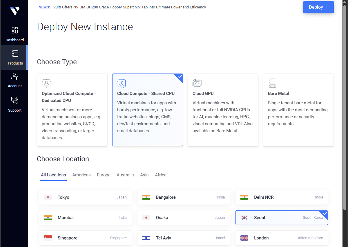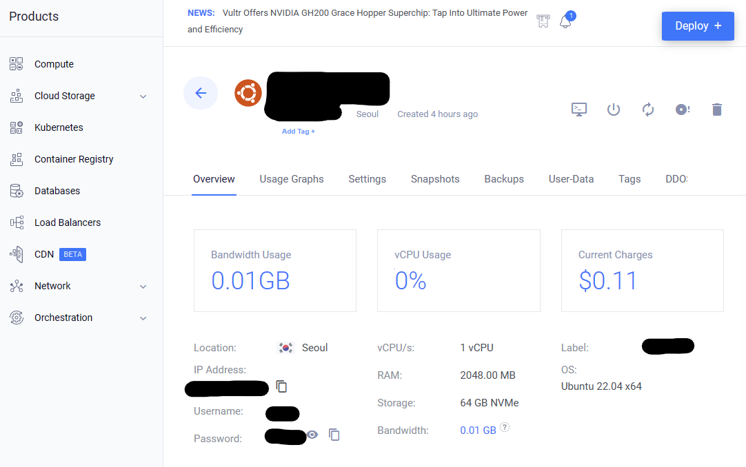 일단 Vultr이 가격이 더 싼 것 같아 Vultr을 시도해 보기로 했다. (학생은 돈이 없다. 한푼 한푼 아껴서 에셋 사야 한다..)