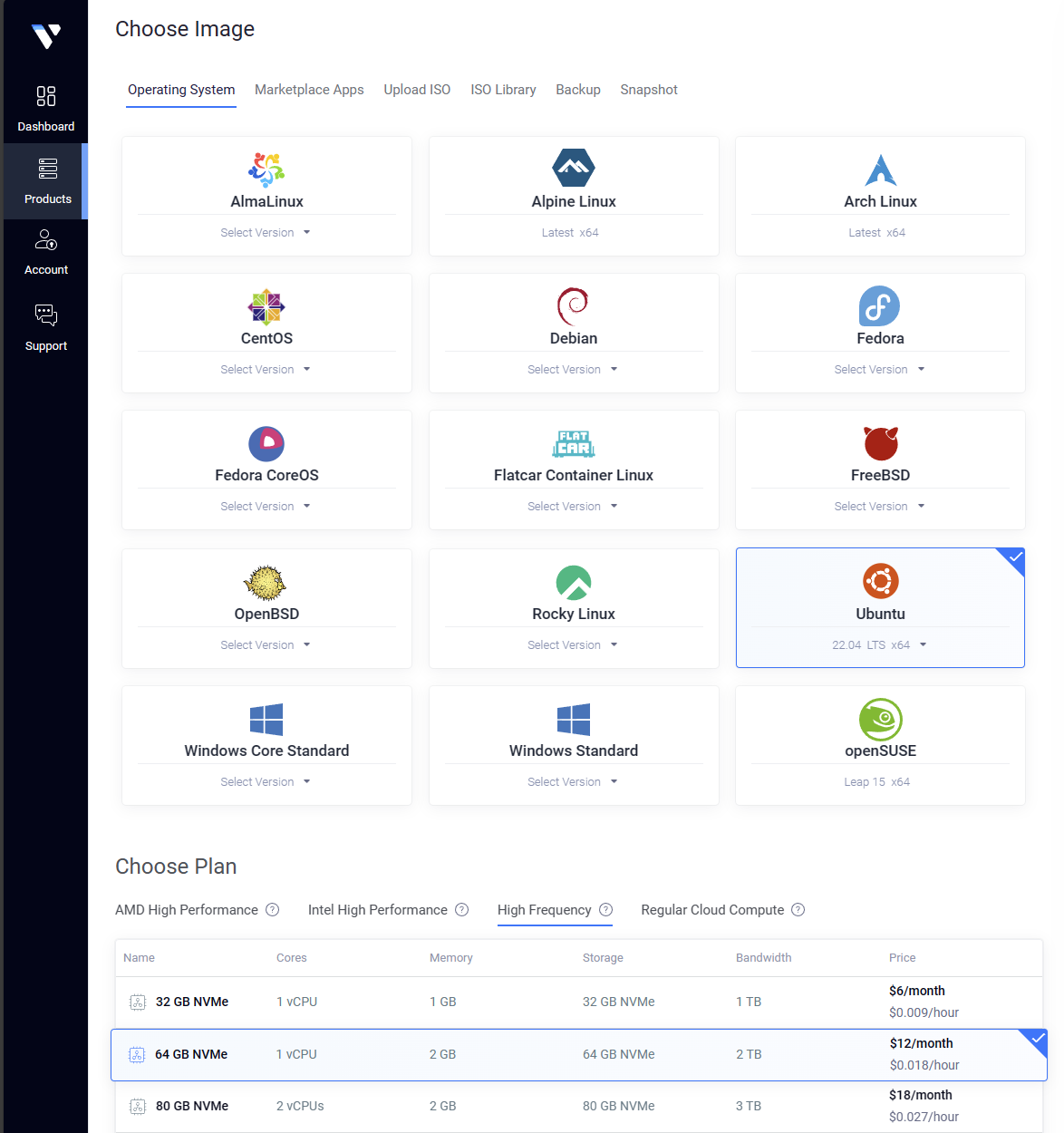Plan은 컴퓨터의 성능이다. AMD나 Intel의 최신 CPU를 고르거나, NVMe SSD를 쓰는 좀 지난 CPU를 쓸 수 있다. 프로젝트가 30기가는 넘을 것으로 생각해 64기가 가성비 플랜을 골랐다.