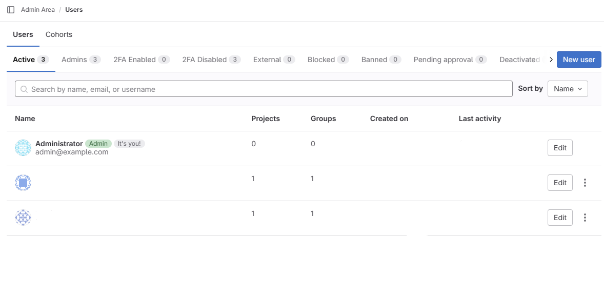 ID는 root, 비밀번호는 /etc/gitlab/initial_root_password에 저장되어 있다.