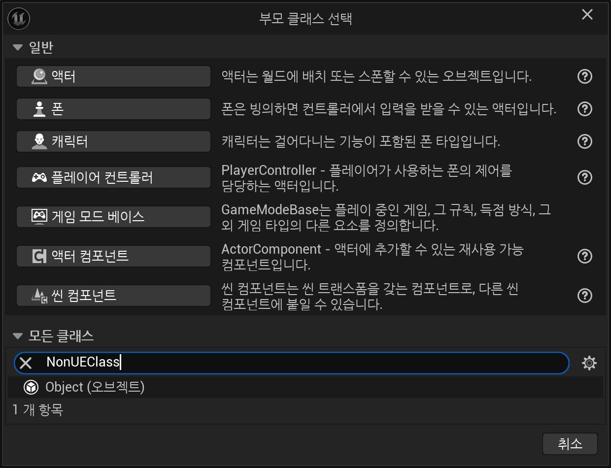 아무것도 상속받지 않는 NonUEClass라는 클래스를 만들어보자.